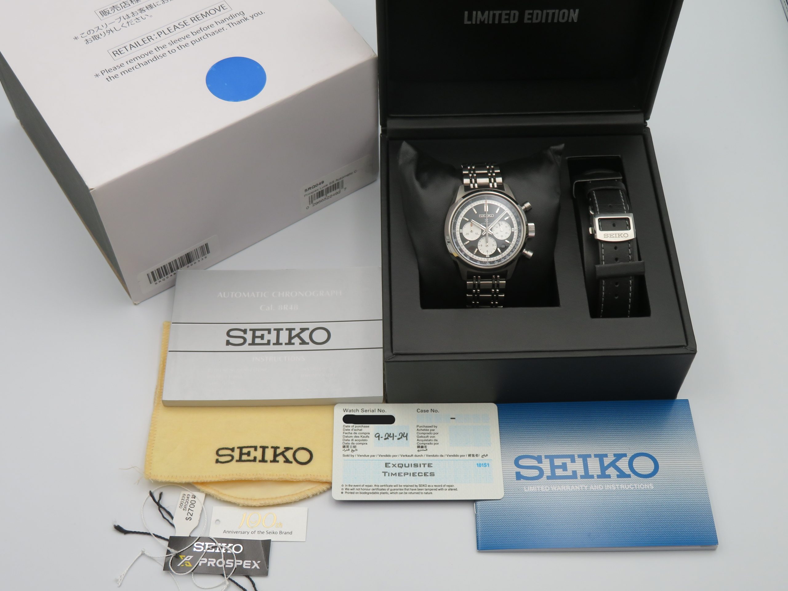 2024 Seiko SRQ049 100th Anniversary Prospex Speedtimer Automatic Chronograph