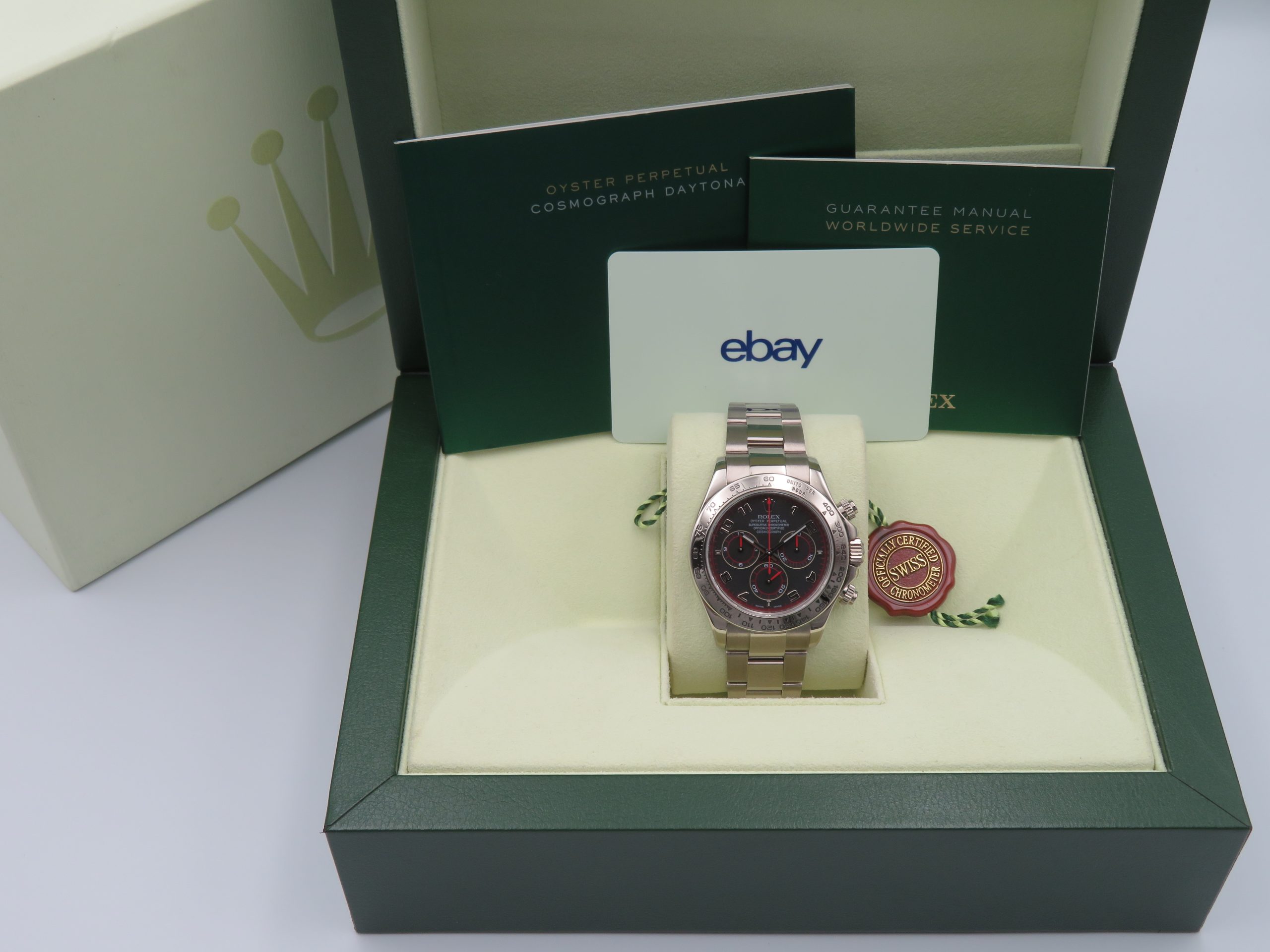 2001 Rolex Daytona 116519 Chrysoprase Dial 18k White Gold Full Set Sold in 2003