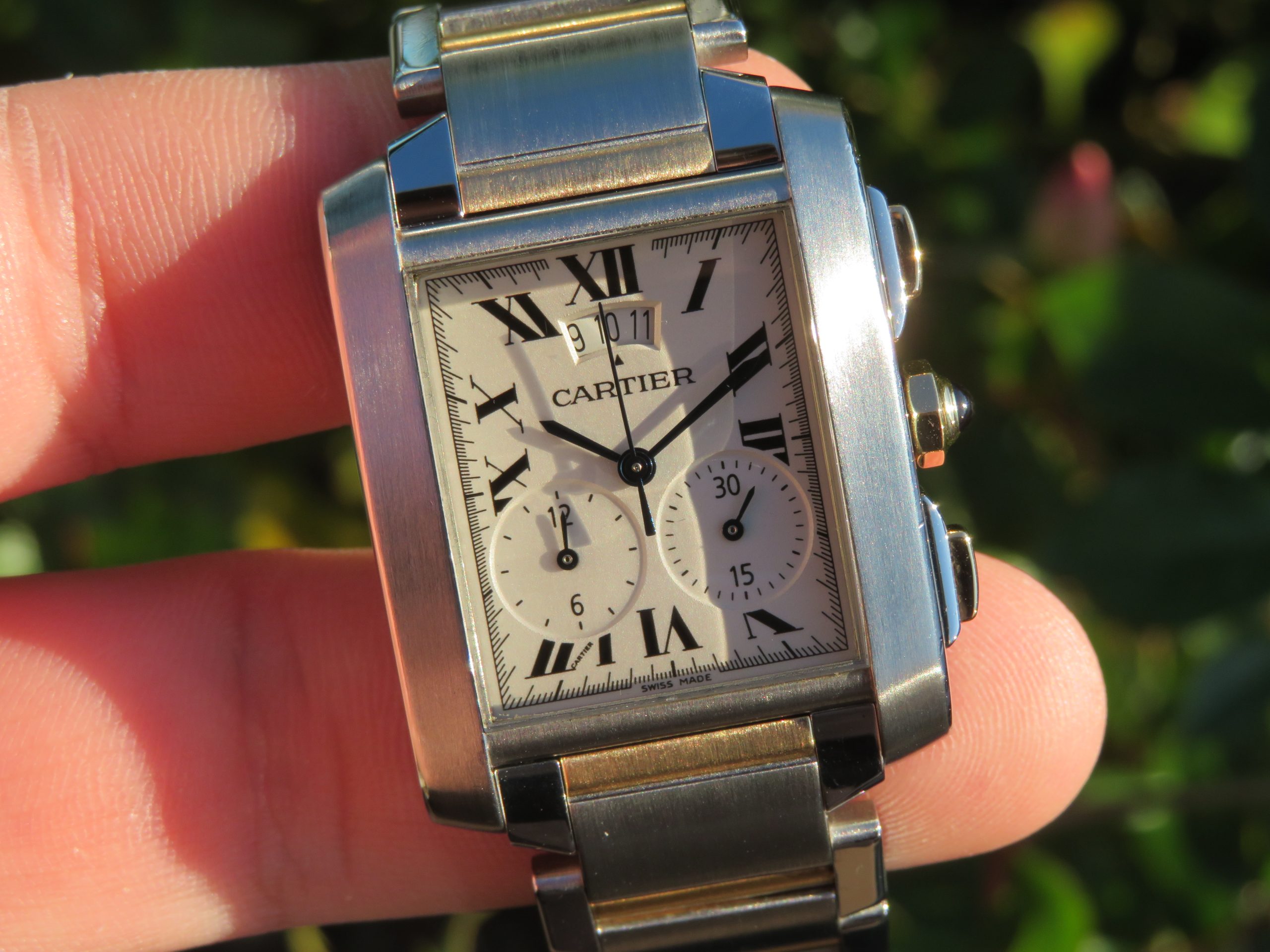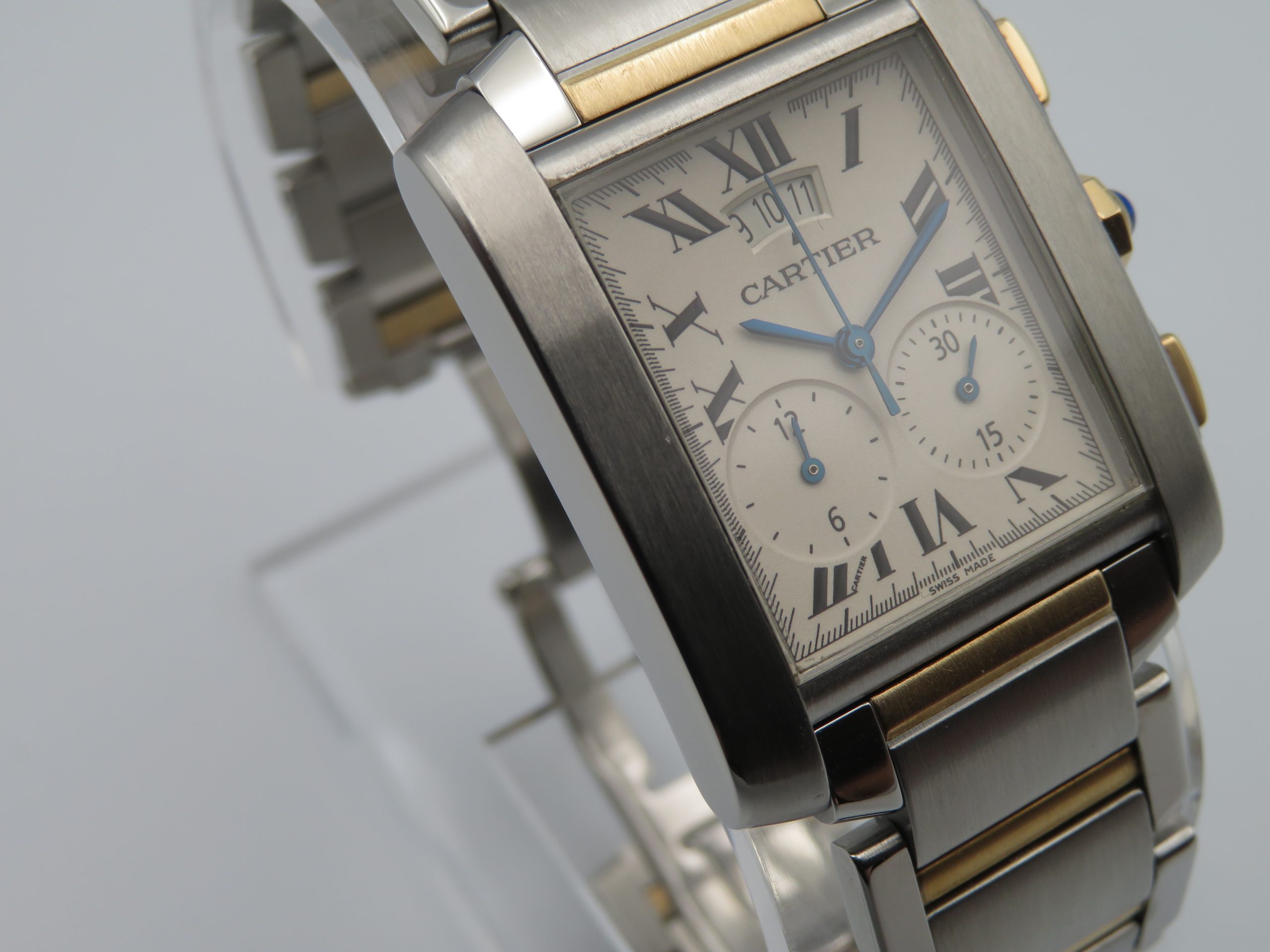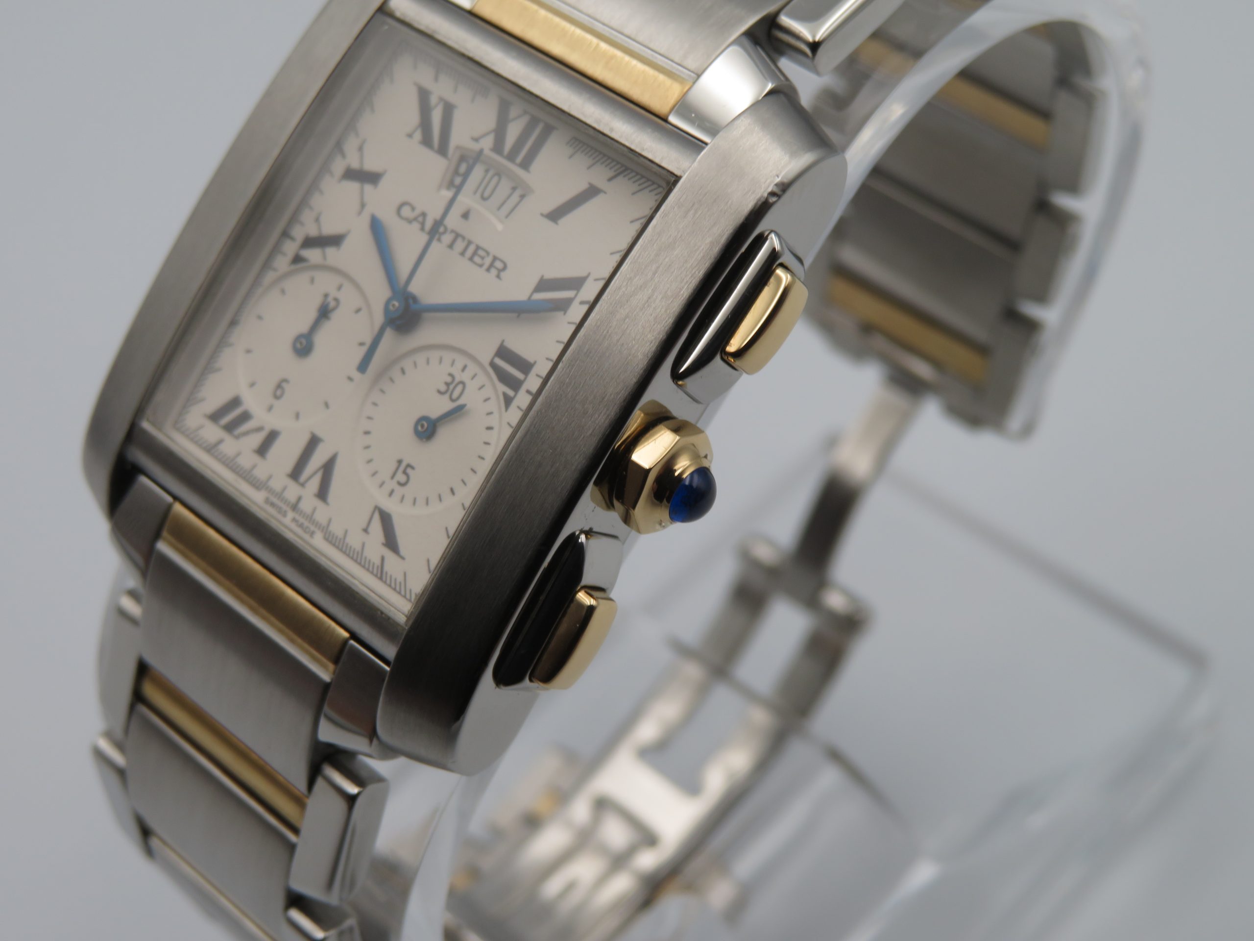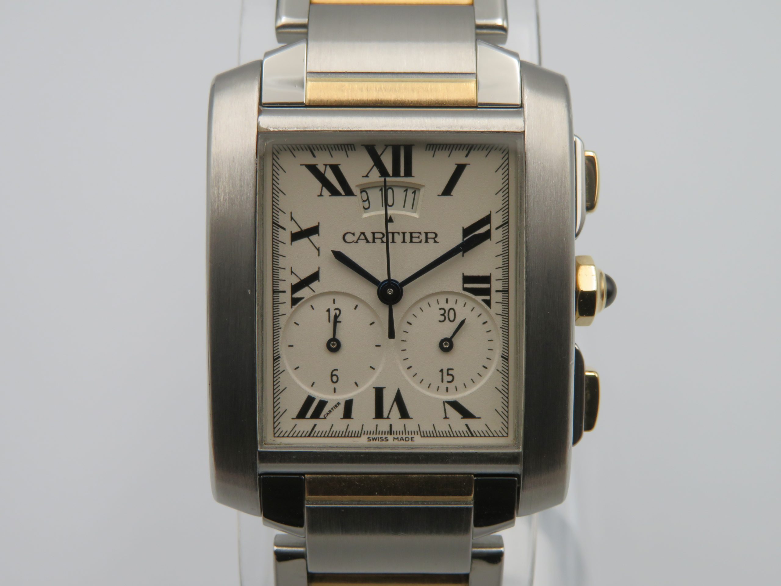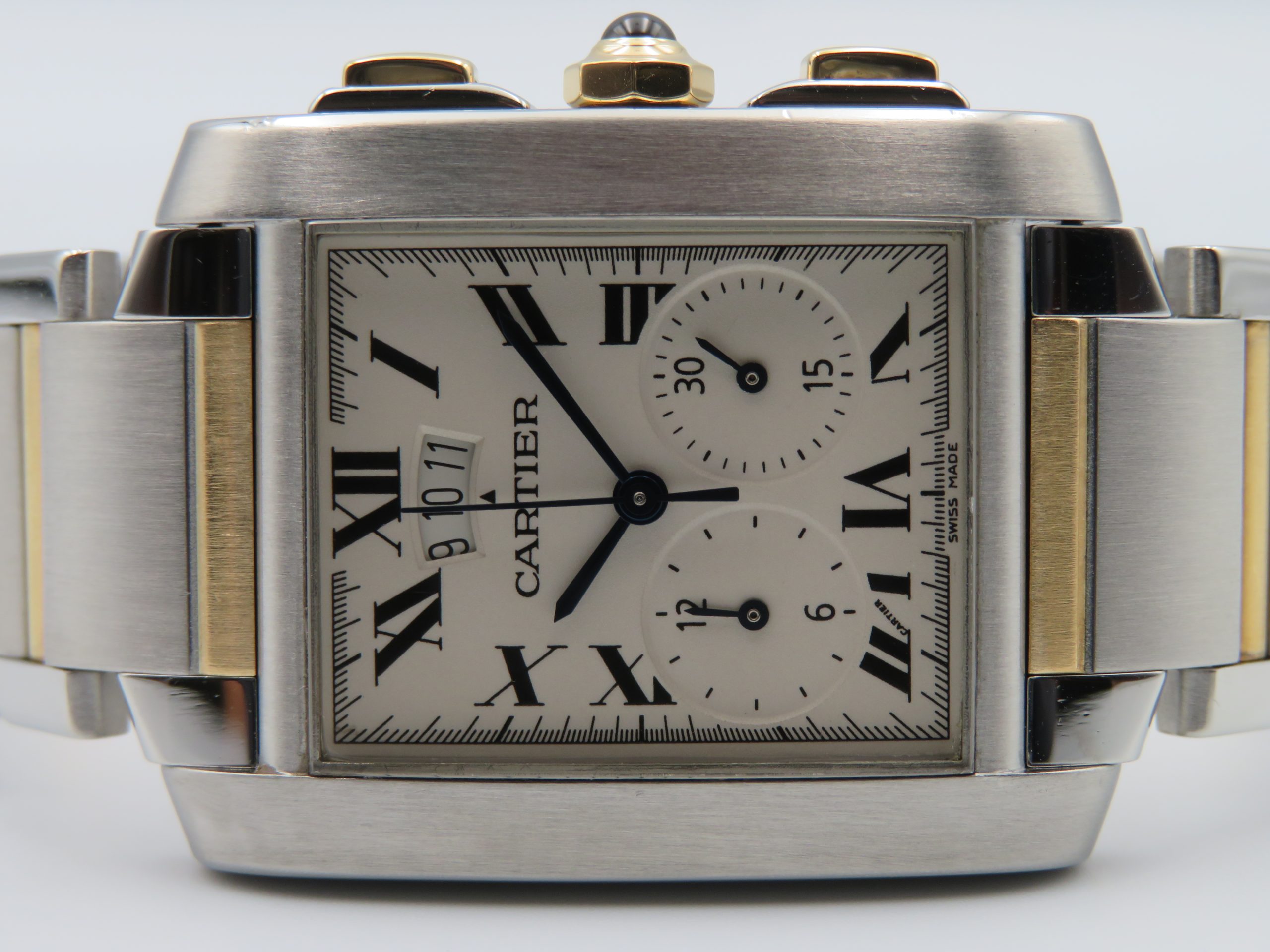 Pre-Owned Cartier Tank Francaise Chronograph 18k & St. Steel Wristwatch 2653