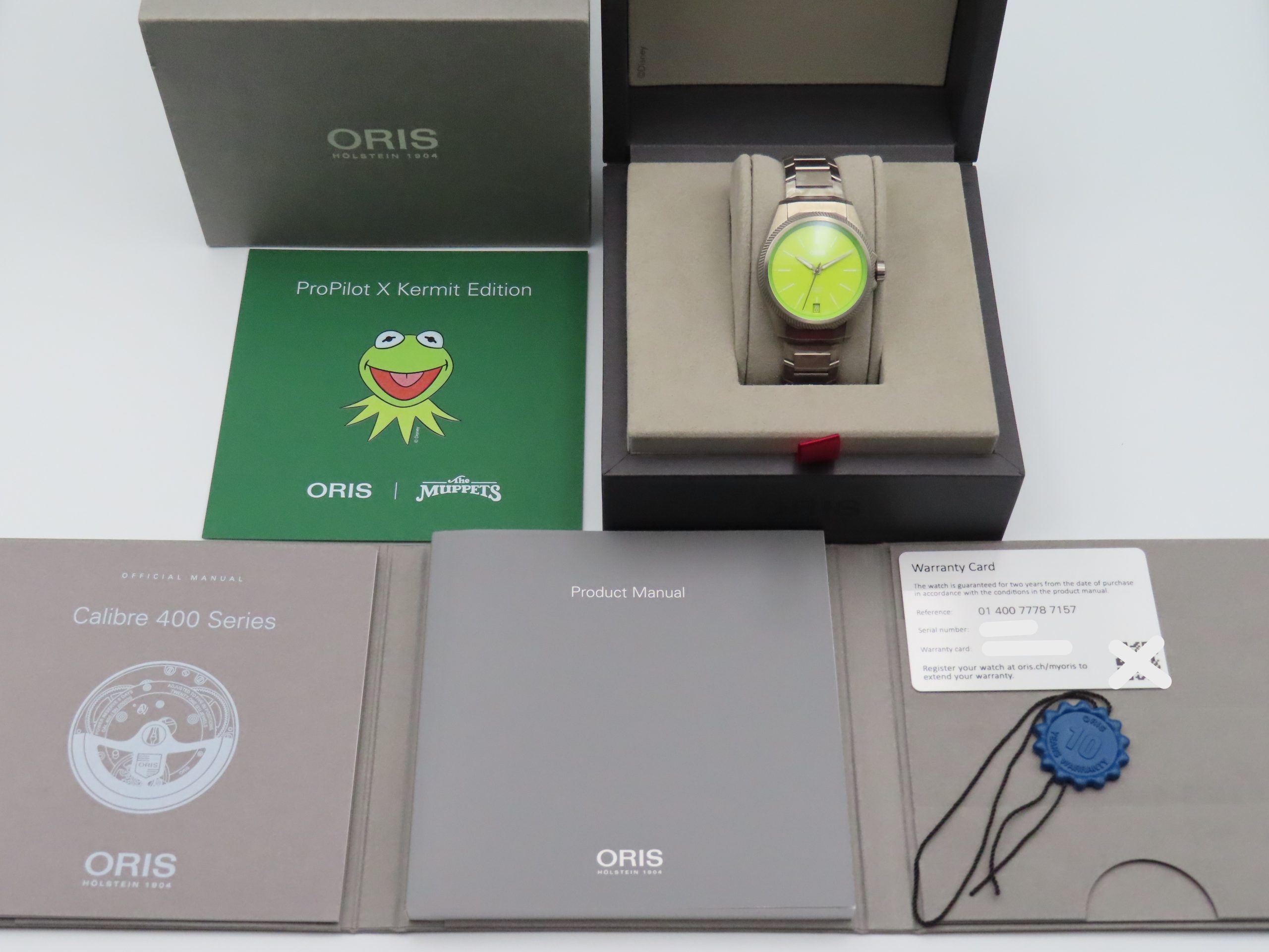 NEW Oris Pro Pilot X Kermit Edition Titanium 5 Days 01 400 7778 7157 Box Papers