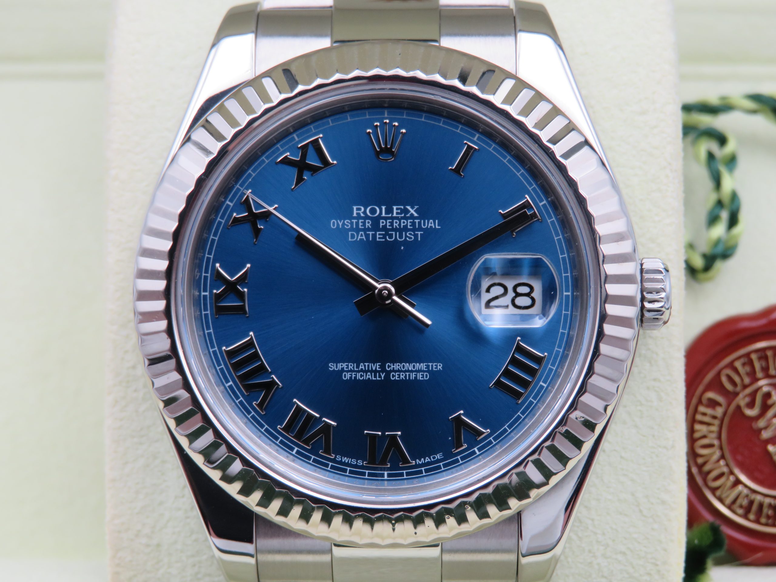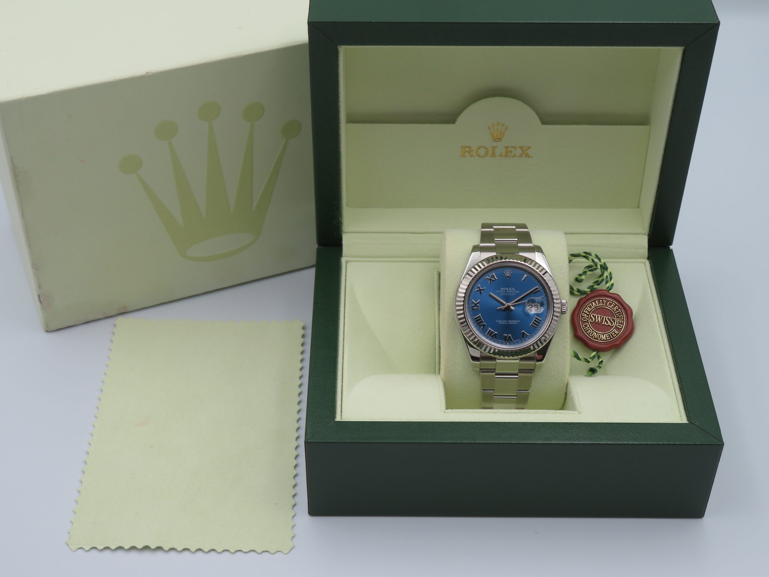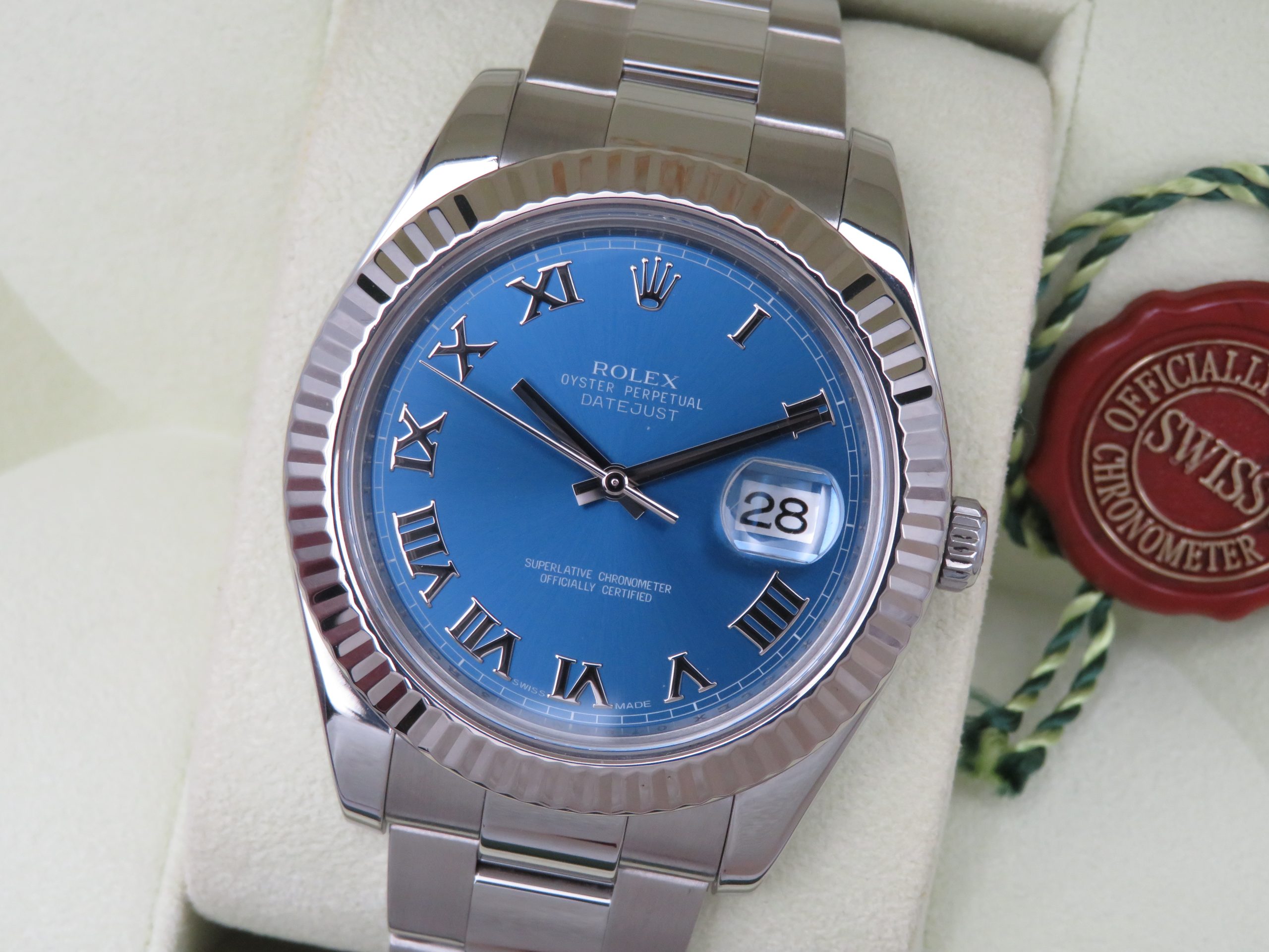 Rolex Datejust II 116334 Blue Roman Dial Fluted Bezel C. 2009