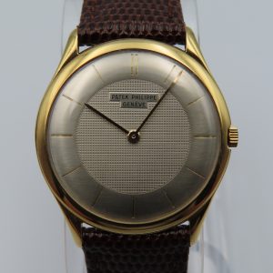 For sale is a vintage 1951 Patek Philippe Calatrava manual-wind wristwatch in 18k yellow gold, model/reference number 2507. The watch does not come with the original box or papers. We do have a photocopy of the Extract from the Archives for this watch; please note this is not the original archive document, only a copy. The watch is currently fitted with a non-original leather strap, and the buckle is not original Patek Philippe nor yellow gold.