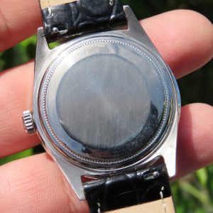 Features: 18k white gold case, non-Rolex diamond bezel and non-Rolex diamond dial, screw-down crown, plastic crystal, screw-back case, and a cal. 1555 automatic movement with 26 jewels.
