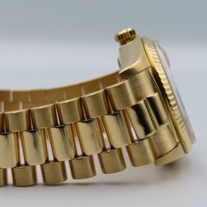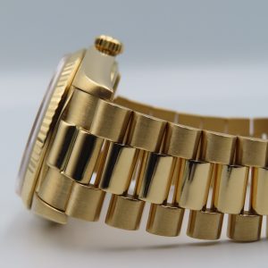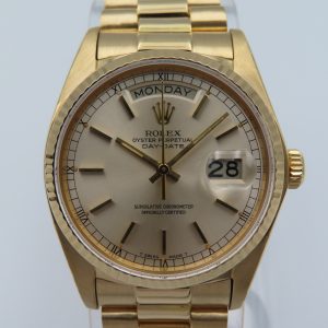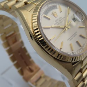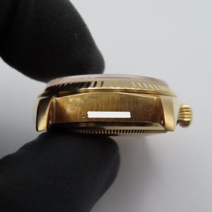 For sale is a pre-owned men’s vintage 1973 Rolex Day-Date “President” reference/model number 18038. The watch has single quickset, meaning only quickset on the date, not the day. It comes exactly as pictured and does not have any original box or papers. It has a 5,970,xxx serial number, which approximately dates the production year to 1973. The watch is 100% authentic, running excellently, and comes with a 1-year warranty through our store.