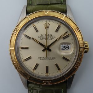 For sale is a 1979 vintage Rolex Datejust Turn-O-Graph Thunderbird, model/reference number 16253. The watch comes exactly as shown. It does not have the original Rolex bracelet, nor does it come with the box or papers. We know the watch dates to 1979 based on the “6 million” serial number, which corresponds to that production year.