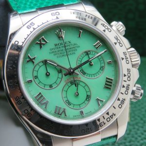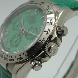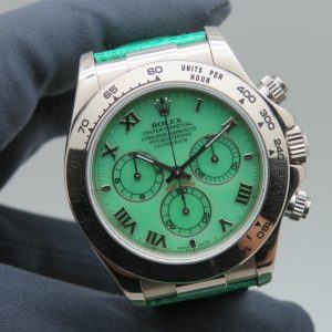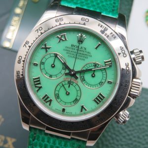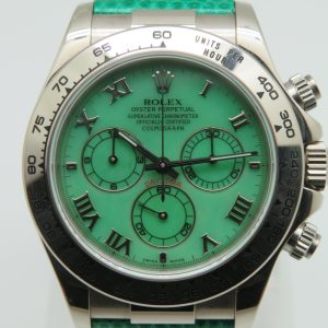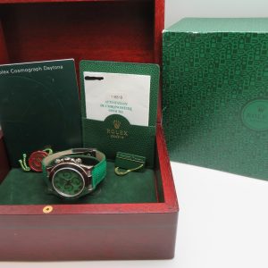 For sale is a 2001 Rolex Daytona 116519 with Full Set. It was first sold in 2003. The watch has an original Chrysoprase dial, original boxes, punched papers (K Serial), and a set of original matching hangtags. It also still has the original case stickers on the back.