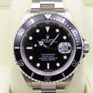 For sale is a men’s pre-owned, unpolished 2007 Rolex Submariner Date (ref. 16610), with the original box, papers, and case back sticker. The watch is 100% authentic, running excellently, and is backed by us with a 1-year warranty.