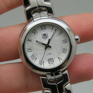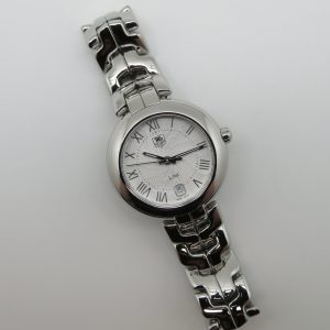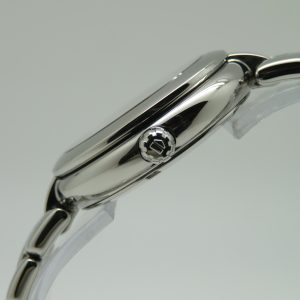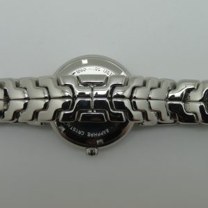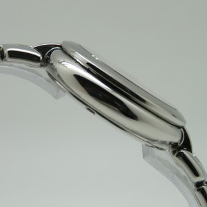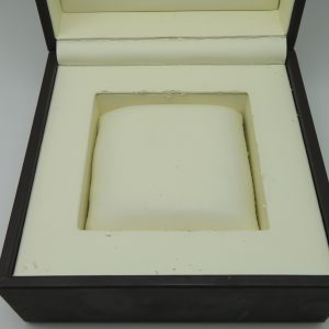 Condition: The overall condition of the watch is good. As a pre-owned piece, you can expect minor surface scratches and light scuffs on the case and bracelet. It is a battery-operated quartz watch, so there aren’t many mechanical complications, but it is functioning properly and keeping accurate time. The box is in poor condition – the interior leather is flaking, and the exterior shows some nicks and scuff marks.