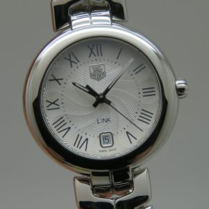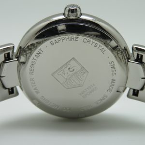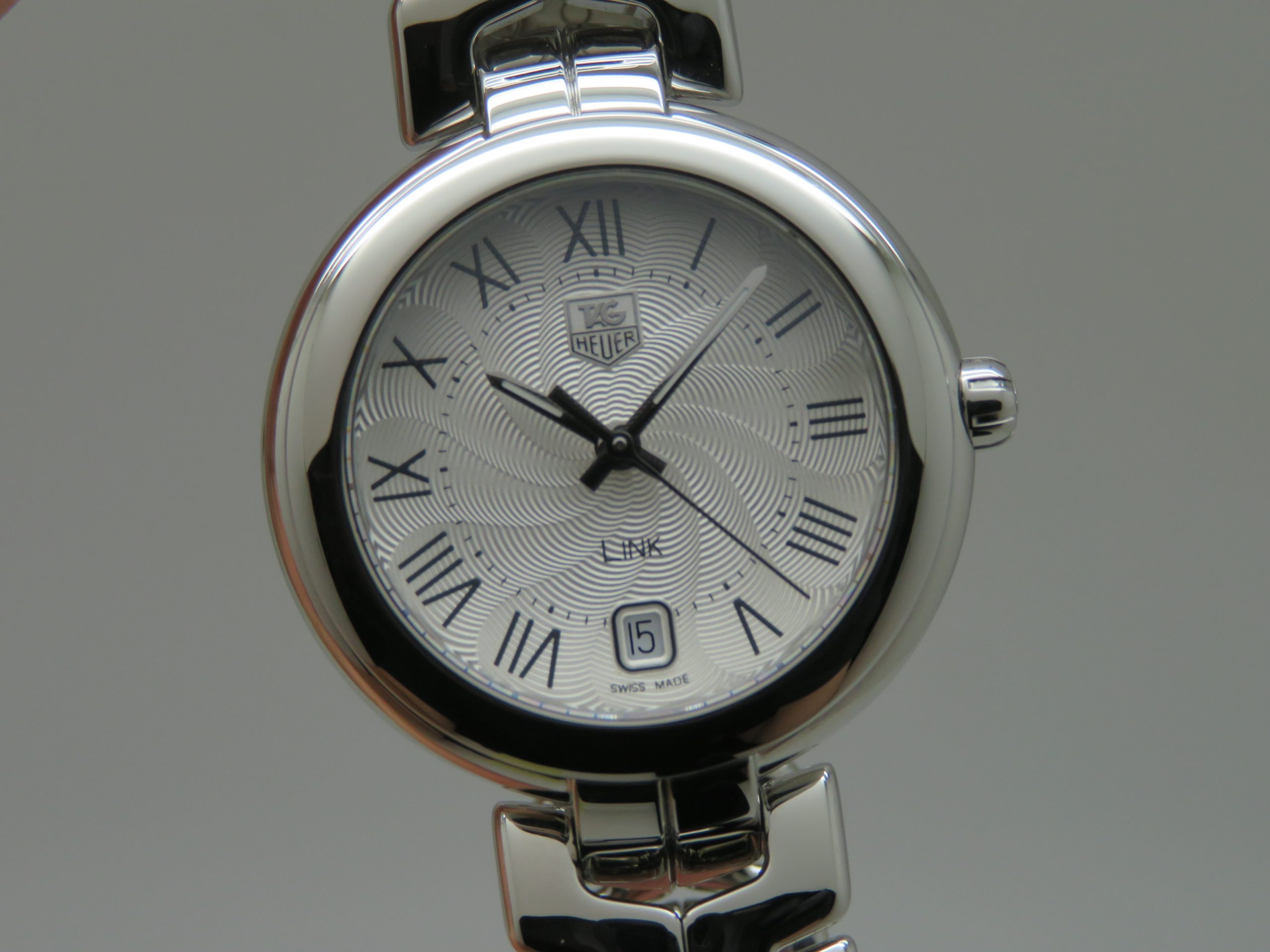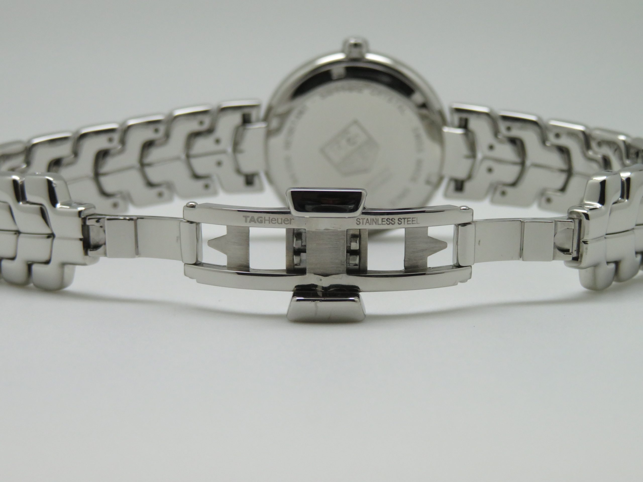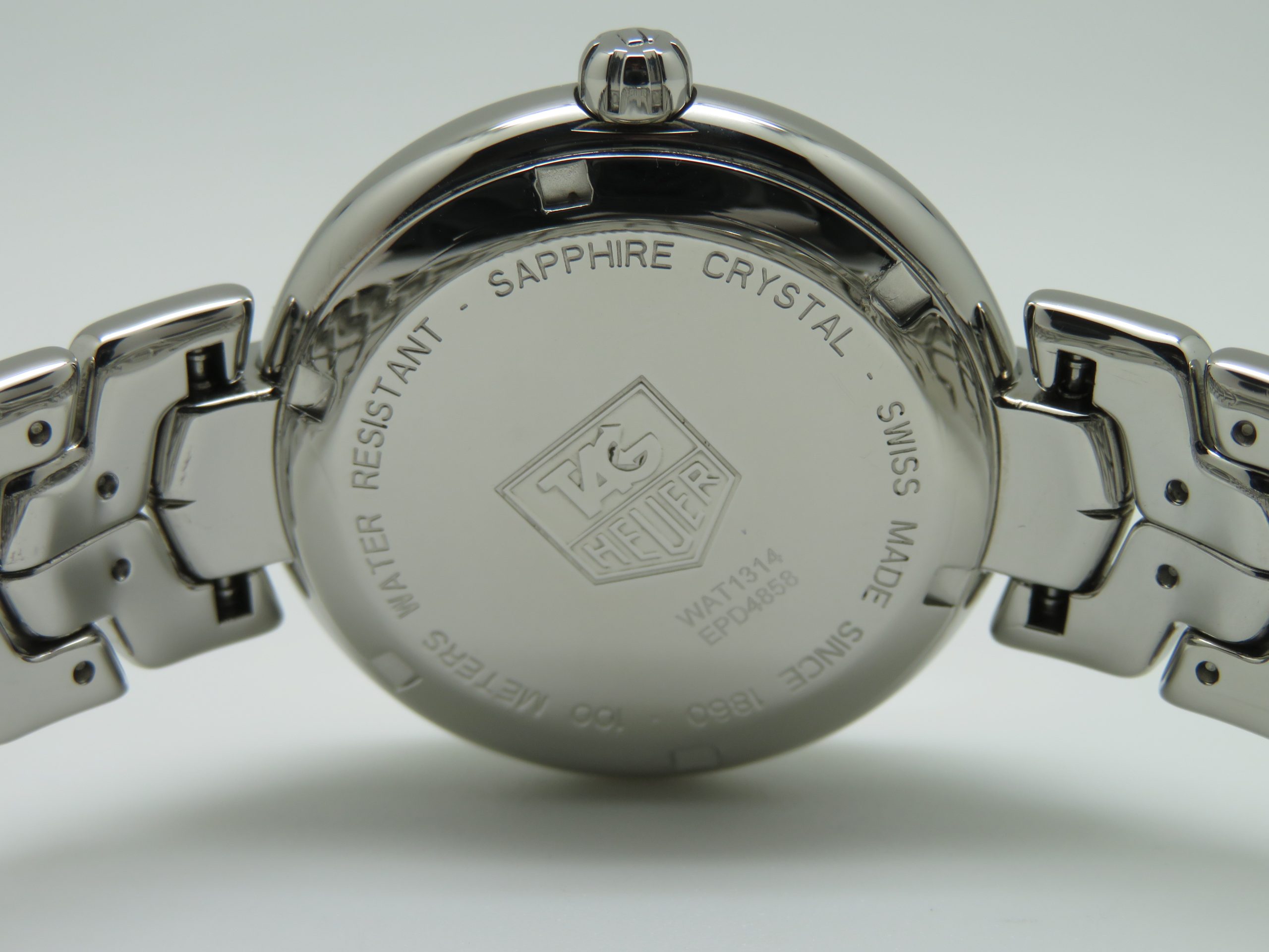 For sale is a 2013 Ladies Tag Heuer Link, reference number WAT1314. The watch comes complete with the full set of box and papers, as well as the original purchase receipt (personal information redacted) and original service papers for a battery replacement. The watch was originally purchased from Bloomingdale’s in San Francisco.