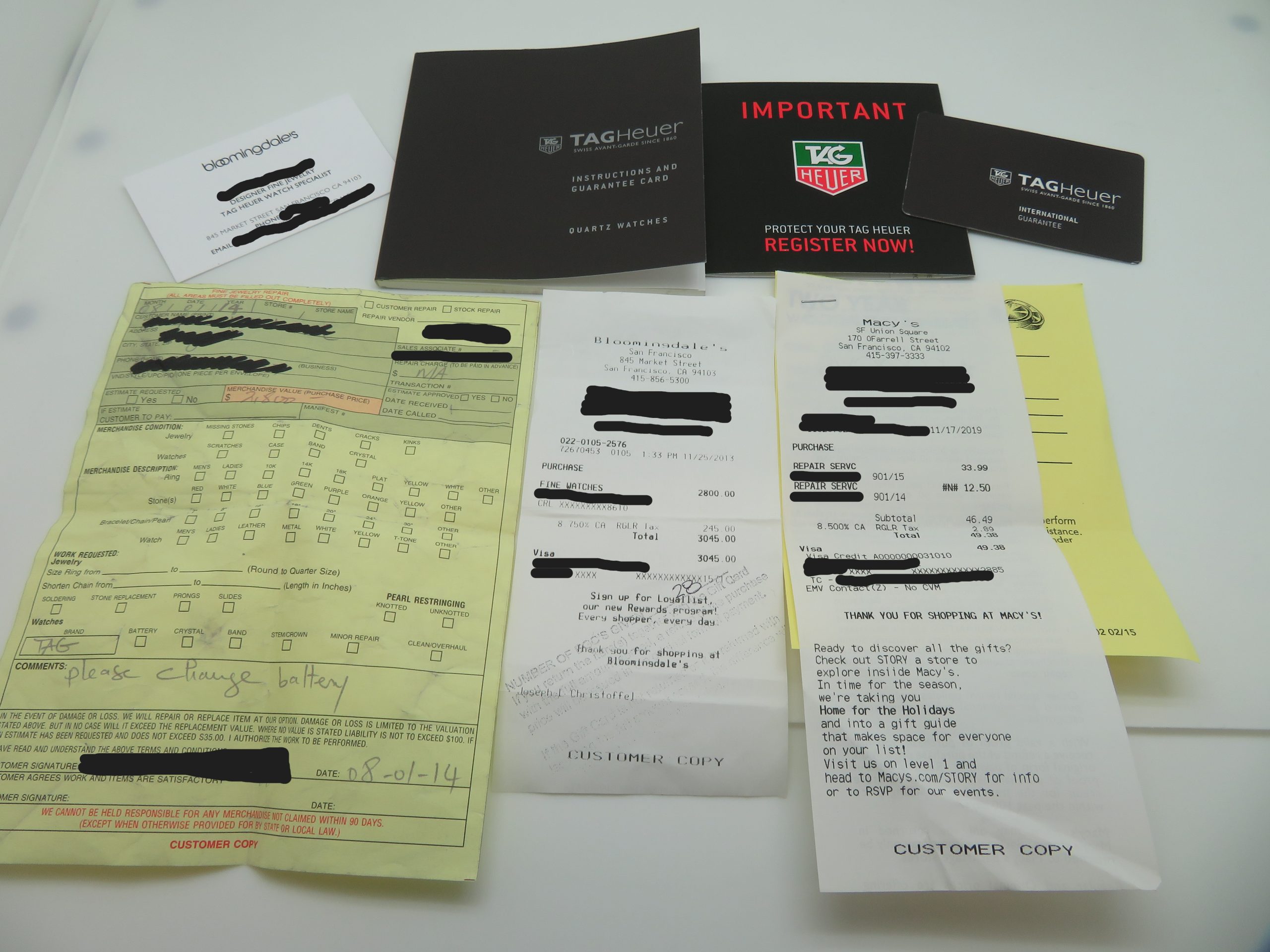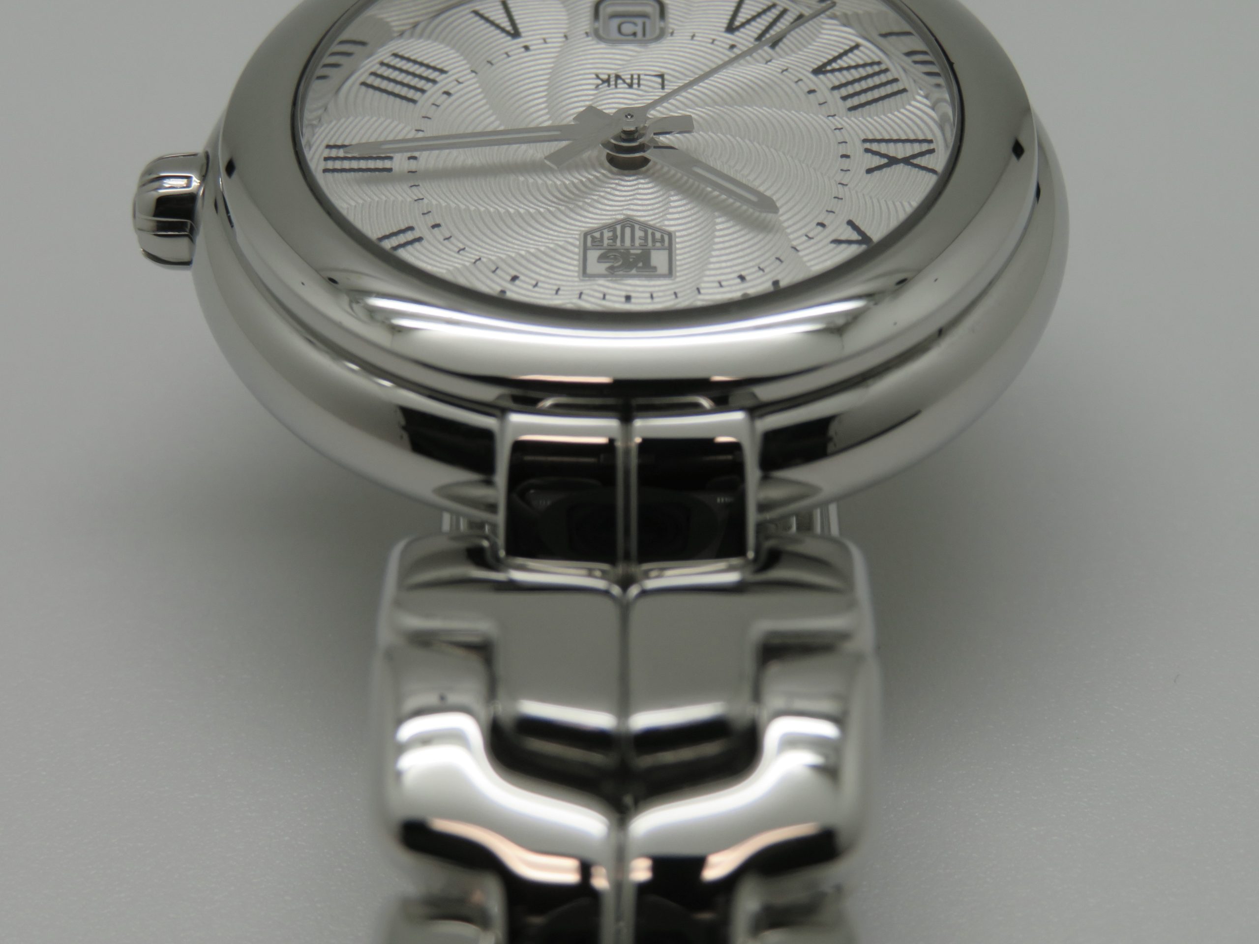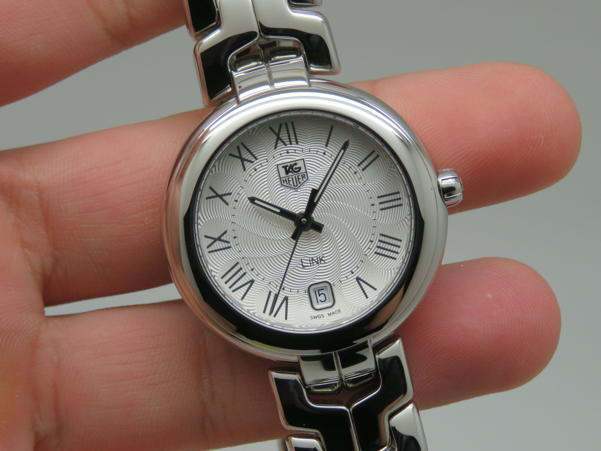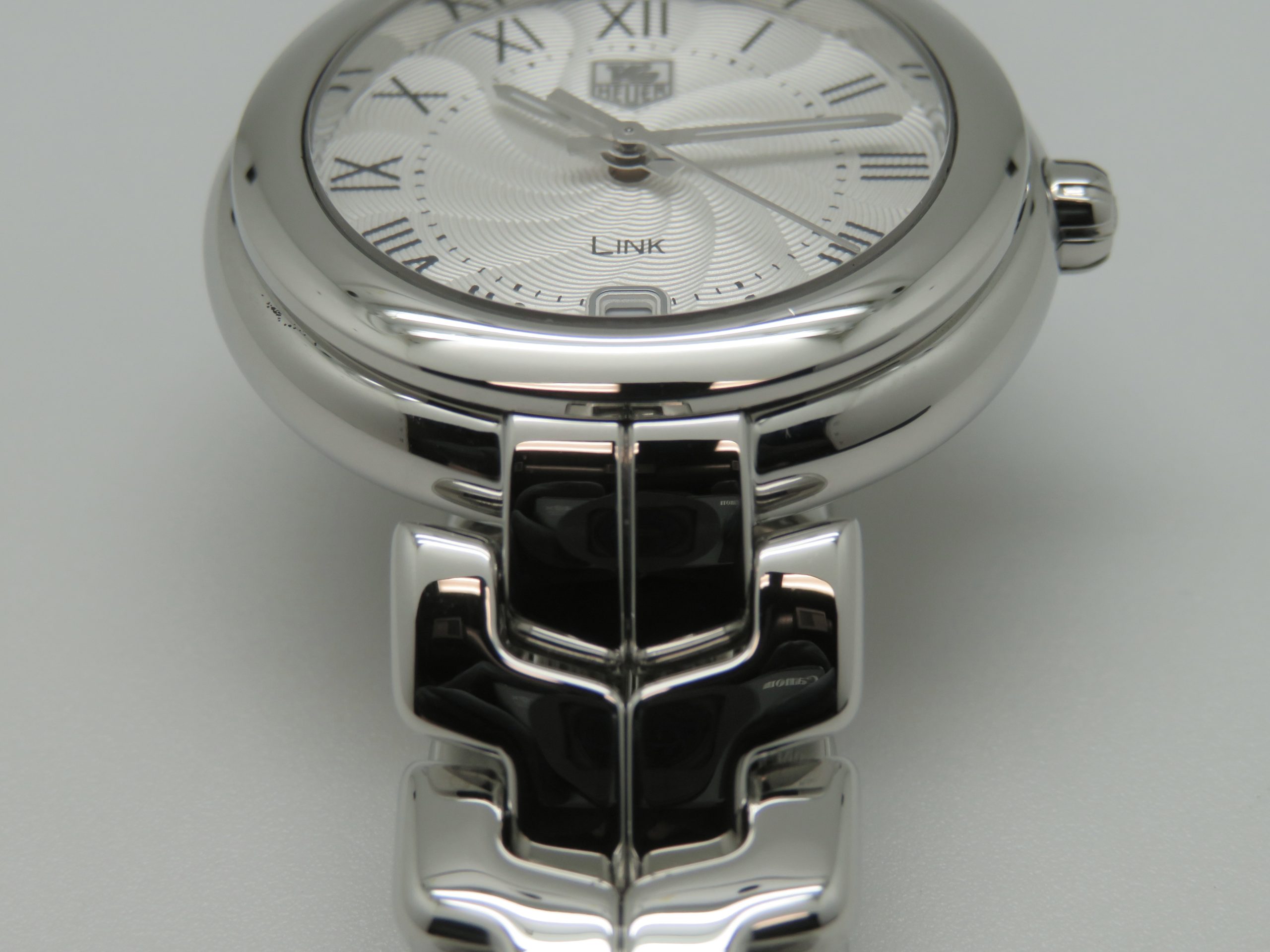For sale is a 2013 Ladies Tag Heuer Link, reference number WAT1314. The watch comes complete with the full set of box and papers, as well as the original purchase receipt (personal information redacted) and original service papers for a battery replacement. The watch was originally purchased from Bloomingdale’s in San Francisco.