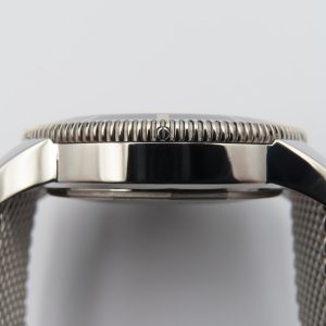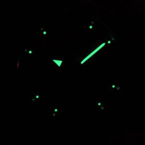 You can expect light surface scuffs on the case and bracelet. The dial and hands are clean and in excellent condition. The AR coating on the sapphire crystal has some light surface marks (extremely hard to capture on camera), and the bezel insert has a small dent located at the top around the 1 o’clock hour marker.