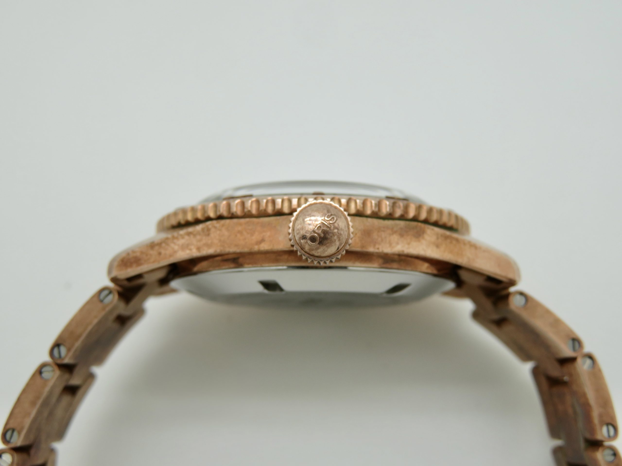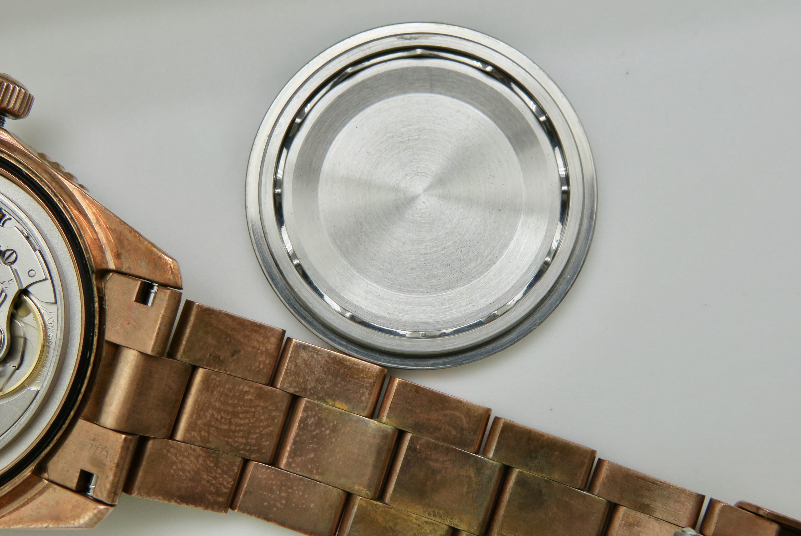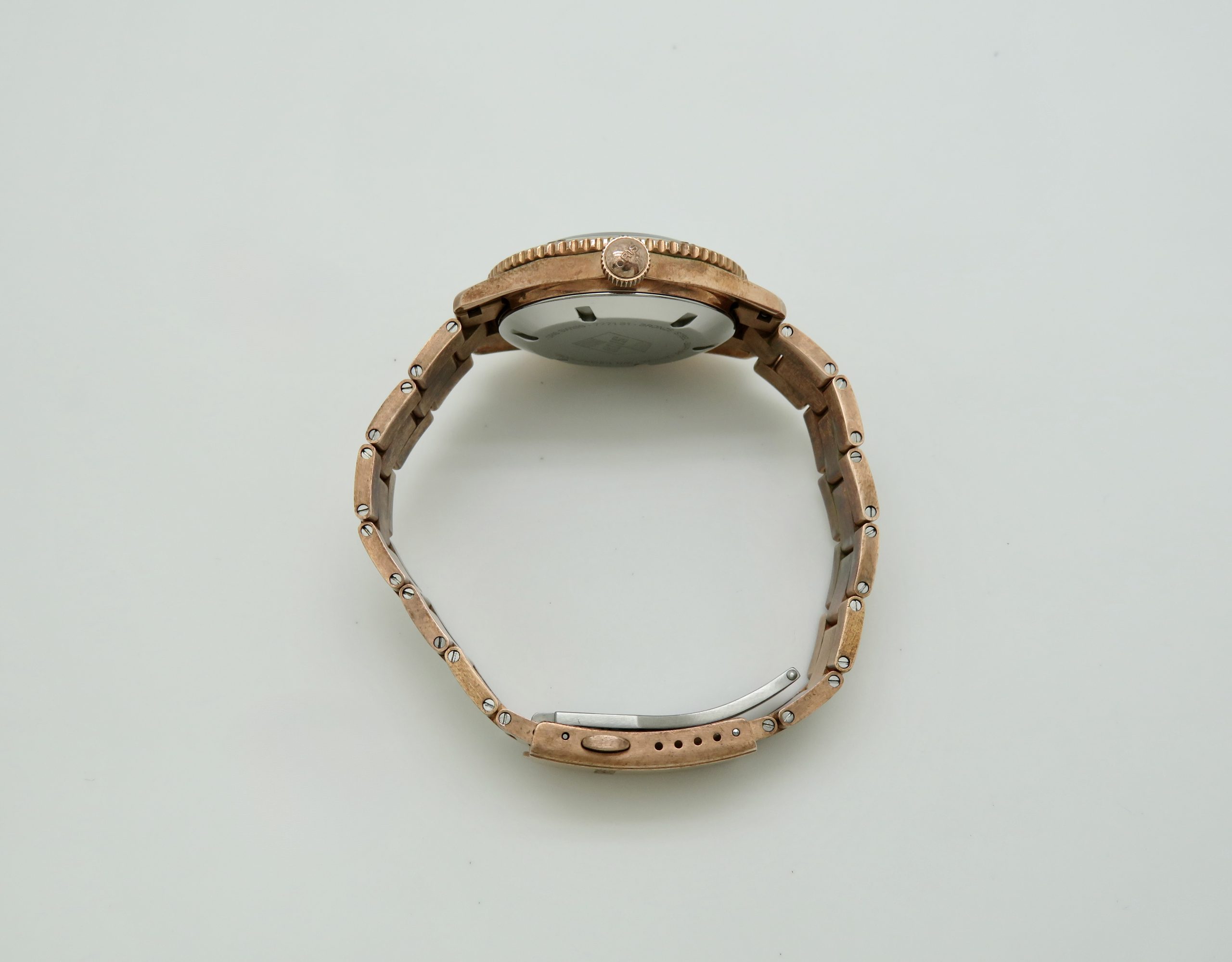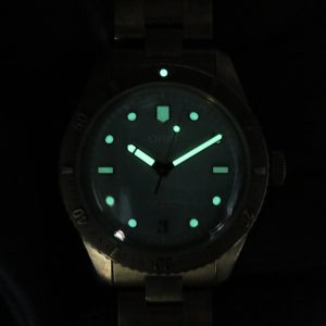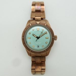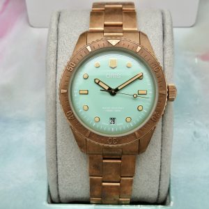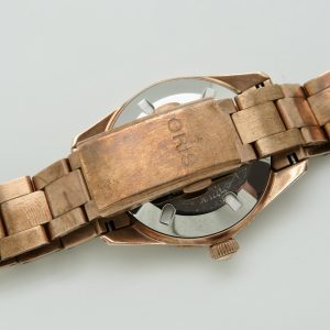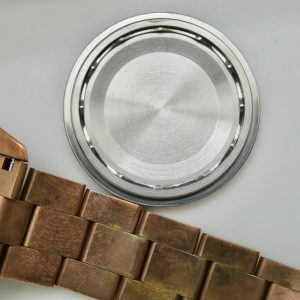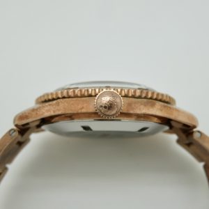 The watch runs perfect and keeps excellent time. It will come with a one year warranty directly through our shop. The watch was purchased new on 03/31/2022. It has its original box, papers, all the links, and the leather strap. The bronze has aged and it has surface scuffs, all of which look nice and natural. The overall condition of the watch is very good. Free shipping in the USA. Shipping outside of the USA is $100. Import taxes and customs fees are buyers responsibility. We have a three day return policy, meaning you have three days from the time you receive it to decide if you’d like to keep it or not. The item must be returned in the same condition as received. Return shipping costs are buyers responsibility.