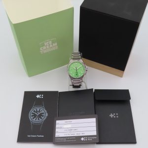 For sale is a men’s pre-owned 2024 Christopher Ward Ice Cream Twelve 38 “Mint” limited edition wristwatch, limited to 200 pieces. This watch is numbered #041/200. The watch is 100% original and comes with the original box and papers; however, it is missing the mint green colored strap that it originally came with. The watch is running excellent and keeping accurate time with no issues, and it is still under the manufacturer’s warranty until 07/2029.