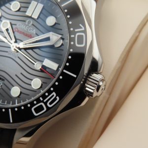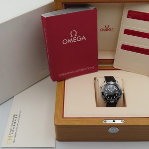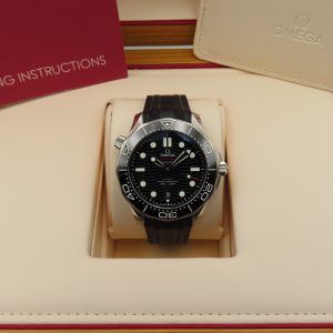 For sale is a 2024 pre-owned Men’s Omega Seamaster Diver 300M, model number 210.32.42.20.01.001. The watch comes with the original box, papers, and purchase invoice from the Authorized Dealer (not the official receipt). It is pre-owned, so you can expect surface scratches and scuffs throughout the case, the steel portion of the bezel, and on the buckle. The dial and the ceramic bezel insert remain clean and in excellent condition. The sapphire crystal has minor surface scuffs on the AR coating (hard to capture on camera). The exact service history of the watch is unknown; however, the watch is running excellently, functioning as it should, and is keeping accurate time. Please be aware that the outer watch box has some stains and imperfections from handling and use as shown in photos.