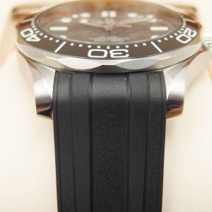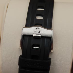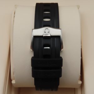 Features: Stainless steel case, two-piece rubber strap with stainless steel buckle, sapphire crystal, ceramic bezel insert, screw-down crowns, exhibition case back, and an Omega Cal. 8800 automatic movement with 35 jewels.