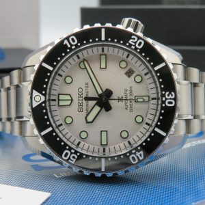 For sale is a 2024 pre-owned men’s Seiko Prospex Marinemaster, model/reference number SLA077. The watch comes with the original box and papers, and we have added a complimentary Uncle Seiko black rubber strap. The black rubber strap is not OEM. The watch itself is 100% original, working as it should, and keeping accurate time. The case back and crown screw down perfectly, and the bezel operates smoothly with no issues. The watch is still under the manufacturer’s warranty until November 2027.