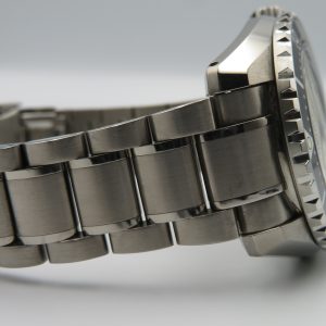 Sizing: 42.6mm case diameter, 20mm lug width, 13.4mm case thickness, and 49.2mm lug-to-lug. The exact factory link count is unknown; however, we can guarantee that the bracelet will fit up to an 8.5-inch wrist maximum.