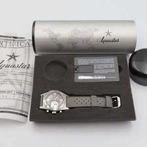 For sale is a men’s 2021 pre-owned Aquastar Deepstar Re-Edition 39mm Automatic Chronograph, model/reference number D103H5320. It comes with the original box, warranty card, and Aquastar accuracy test paper. The watch is 100% authentic, running great with no issues, and includes a 1-year warranty through our shop.