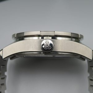 This men’s pre-owned wristwatch comes with the original inner and outer boxes, chronometer certificate, premium international warranty certificate, limited edition certificate, both original hang tags, and the CD holder (CD not included).