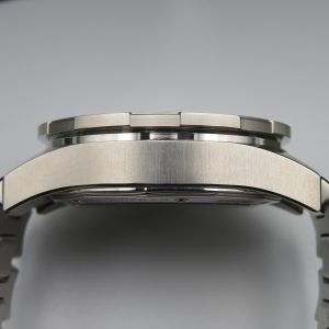 Condition: Pre-owned with scratches and light scuffs throughout the case and bracelet. The sapphire crystal, dial, and bezel are clean and free of scratches. All parts are original – nothing has been replaced – and the watch is running with no issues and keeping accurate time. Exact service history is unknown, but for peace of mind we are including a 1-year warranty through our shop. The inner box has minor tears in the corner where the watch sits and the outer box sleeve is damaged and taped up.