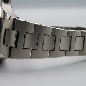 Features: Blue aluminum bezel, sapphire crystal, date with quickset, screw-down crown, screw-back exhibition case, and a base ETA 2824-2 automatic movement with 25 jewels.