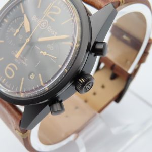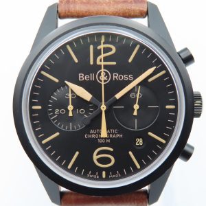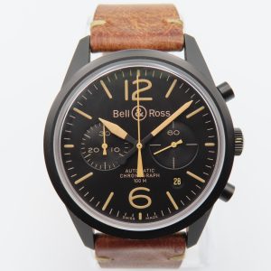 For sale is a men’s pre-owned Bell & Ross Automatic Chronograph 100m Heritage Collection (ref. BR 126-94-SC-10091). The watch does not have the original box or papers, and the two-piece strap currently fitted is not the original Bell & Ross strap. The exact production year is unknown but is estimated to be circa 2010.