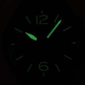 Overall, the watch is in good condition for its age. The case and bezel have minor surface-level scuffs. The sapphire crystal has noticeable, but minor scuffs, which can give the appearance of debris on the dial; however, the dial and hands themselves are clean and free of imperfections. The watch is running accurately and will come with a 1-year warranty through our shop.
