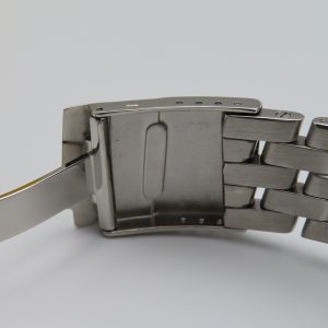 Features: Stainless steel case, unidirectional rotating bezel, luminous pip, luminous hands, luminous hour markers (that do not glow well), quickset date, screw-down crown, and a screw-back case.