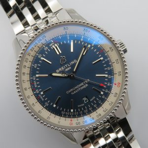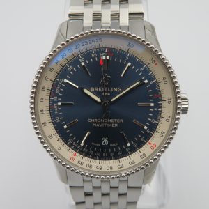 For sale is a pre-owned Breitling Navitimer, model A17326. This watch is being sold as watch only and does not include its original box or papers. The exact production year is unknown; however, this reference was introduced in 2018, so we are classifying it as circa 2018. The bracelet is missing links, and we do not have any extras available.