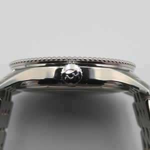 Condition: Pre-owned with scratches and scuff marks throughout the case, bracelet, and bezel. The dial and sapphire crystal are clean and free of scratches. The watch is fully functional with no issues, and all parts are original. The service history is unknown, but the watch is operating properly and keeping accurate time. For added peace of mind, we are backing this timepiece with a 1-year warranty through our shop.