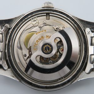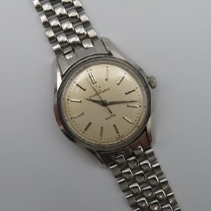 Features: Stainless steel case and bracelet, signed crown, acrylic crystal, screw-back case, seconds hand, and a cal. 1414U automatic movement with 17 jewels.