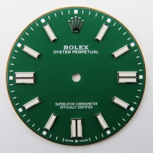 These dials are extremely difficult to obtain. Rolex does not sell them outright. Typically, the only way to acquire one is if you already own a green-dial Oyster Perpetual and send your watch to Rolex for service; if the dial is damaged, Rolex may exchange it for a replacement for a fee, and they retain the original dial.