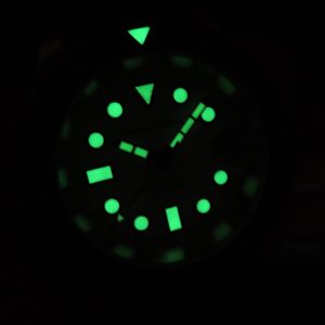 The watch is in very good condition with only minimal surface scuffs on the case. The luminous plot at the 12 o’clock position on the bezel appears to have a minor factory imperfection, possibly excess adhesive. This is purely cosmetic and does not affect function. The rubber strap shows no major flaws. The movement is running perfectly and keeping accurate time with no issues. The watch includes a 1-year warranty through our shop.