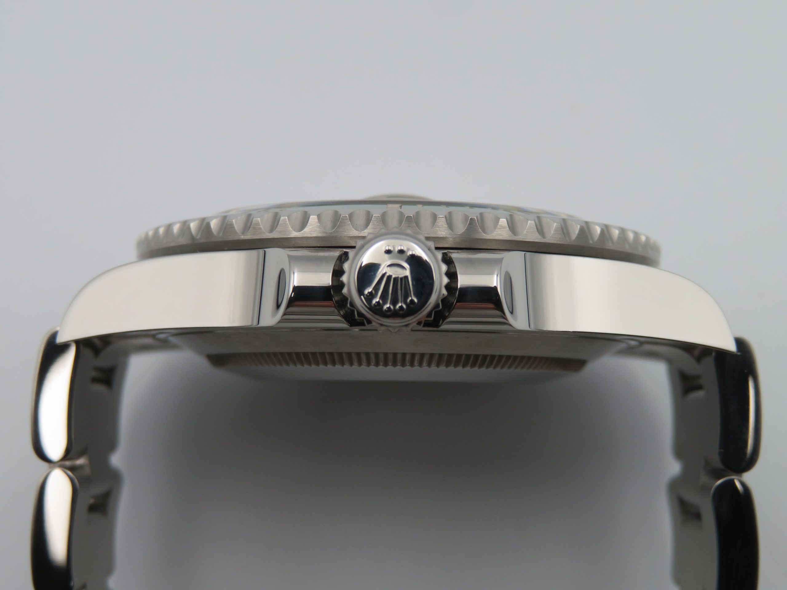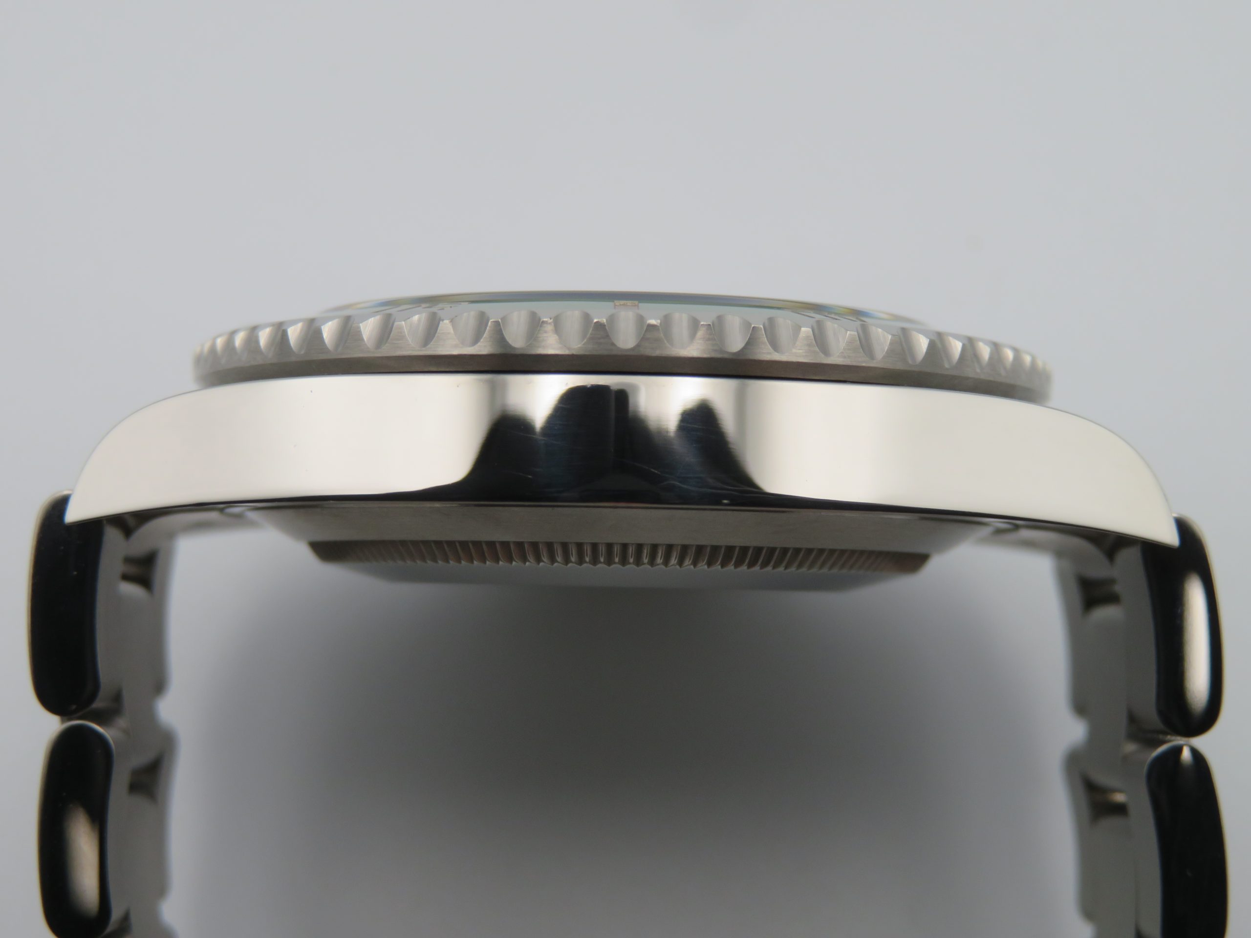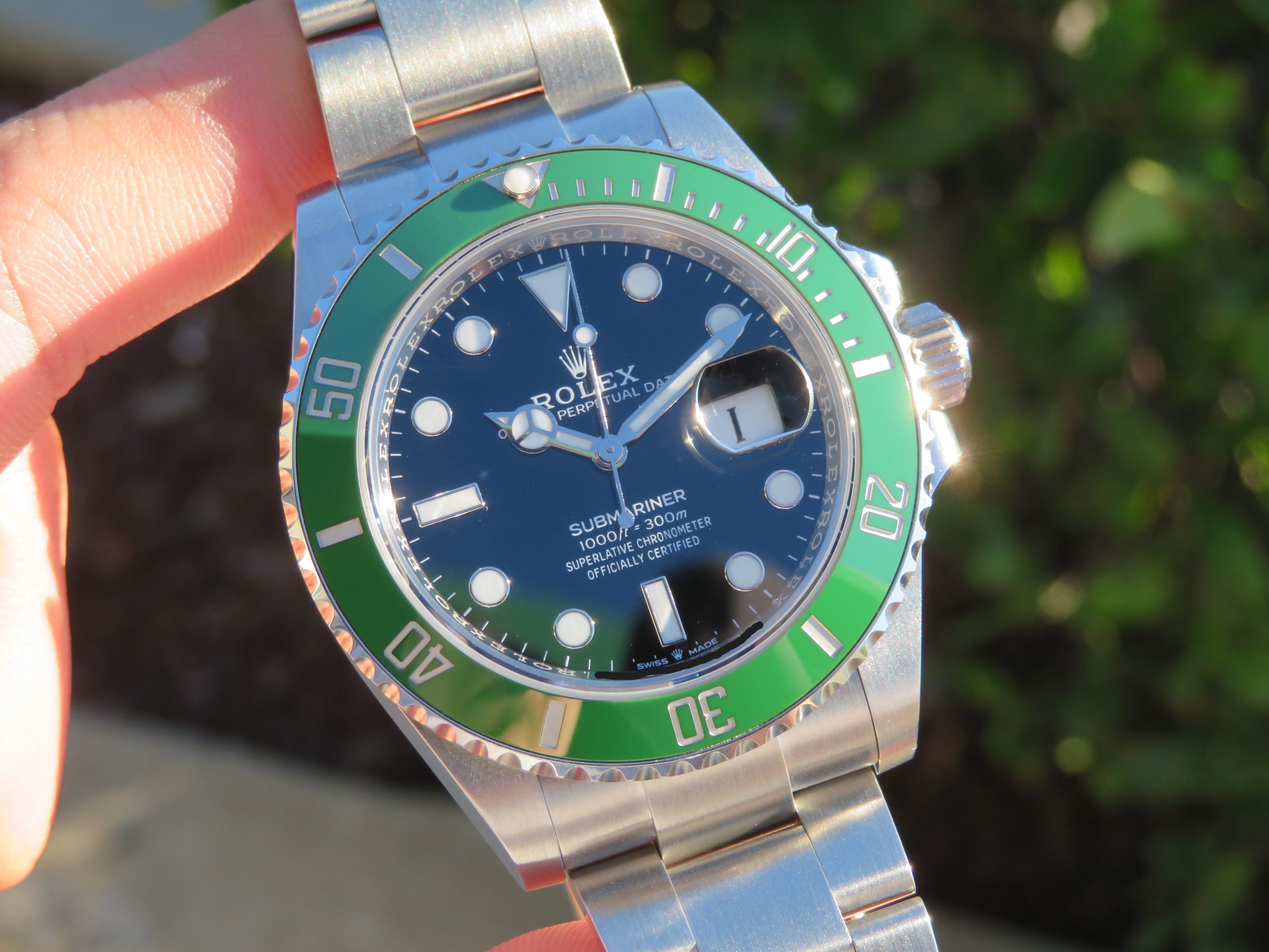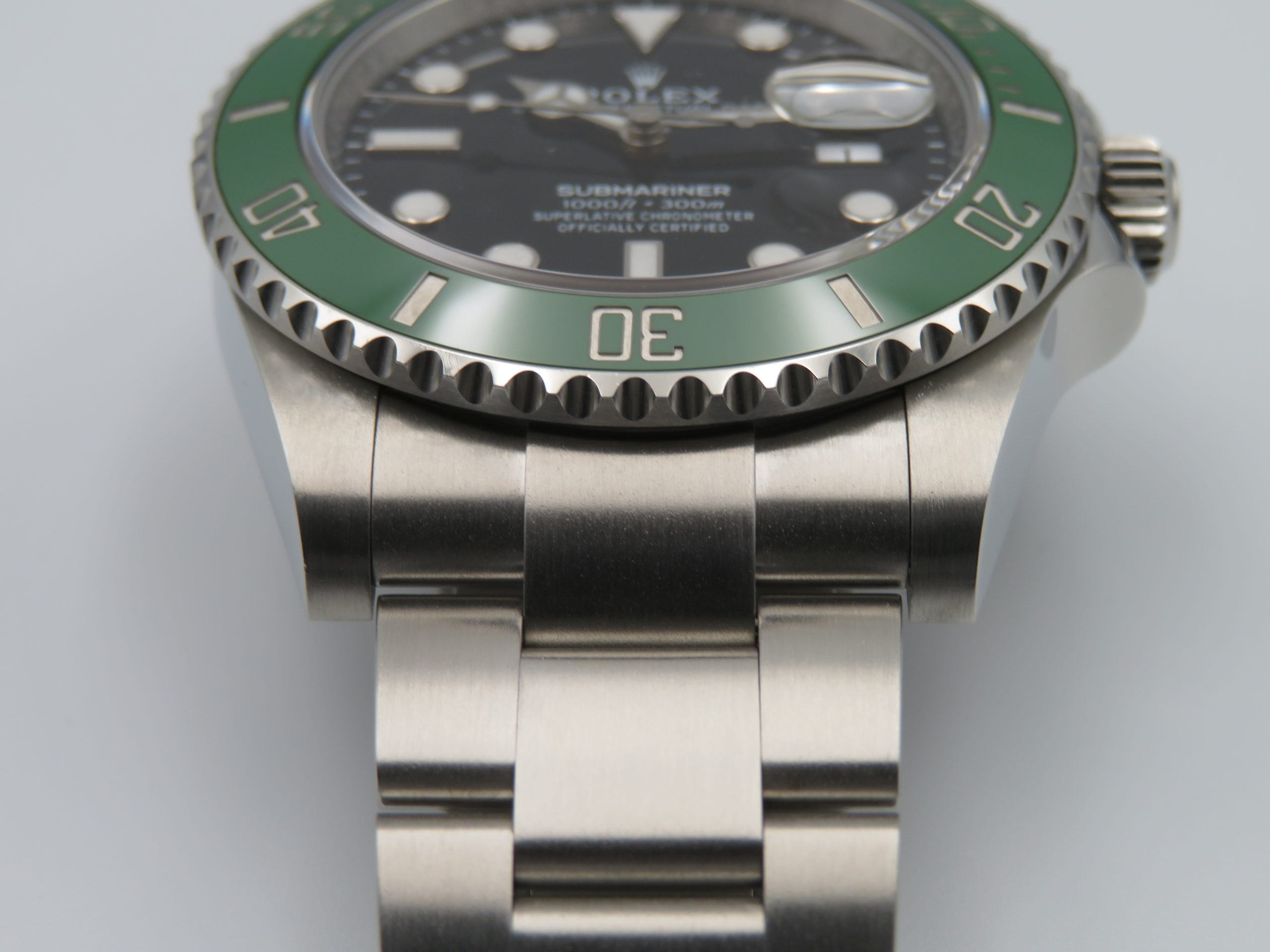 Features: Green ceramic bezel, date with quickset, screw-down crown, screw-back case, and Oyster bracelet with folding clasp and diving extension.