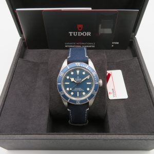 For sale is a pre-owned 2021 Tudor Black Bay 58 (79030B) with the complete set. The warranty card is dated October 2021, so the manufacturer warranty remains valid until October 2026. Light surface scratches and scuffs are visible on the case and clasp, but the watch remains in great overall condition. The crystal, dial, and bezel are clean and scratch-free. The watch is running perfectly with no mechanical issues, and everything is 100% original. It features a bidirectional rotating bezel, luminous dial and hands, screwdown crown, screwback case, and the Tudor Cal. MT5402 movement with 27 jewels and an approx. 70-hour power reserve. Case specs: 39mm case diameter, 11.9mm case thickness, 20mm lug width, 47.5mm lug-to-lug.