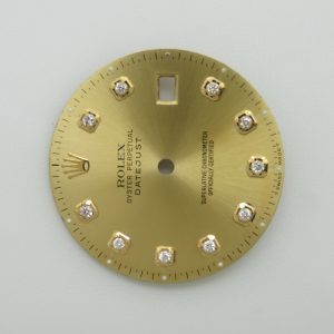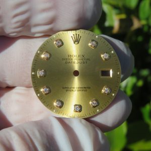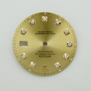 For sale is a pre owned Rolex Datejust 36mm gold champagne diamond dial. This is an original authentic dial. The model reference numbers it was made for are the 16013, and 16233. Free shipping in the USA. Shipping outside of the USA is $100. Import taxes and customs fees are buyers responsibility.