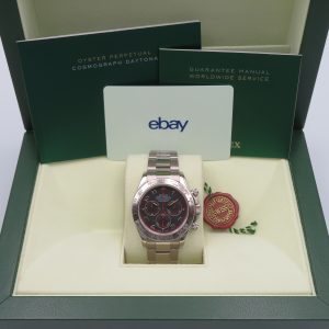 For sale is a pre-owned men’s Rolex Daytona in 18k white gold, model/reference number 116509. The watch includes the original inner and outer boxes, the brown chronometer hang tag, and a 2021 eBay Authentication card from when the watch was previously purchased through eBay. It does not include the original warranty papers. The booklets pictured are authentic Rolex booklets; however, they are not original to this watch.