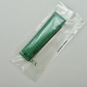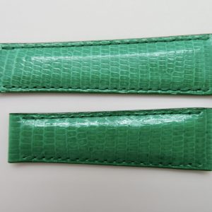 For sale is a brand new original authentic Rolex Daytona genuine lizard green two piece strap. The lug ends are 20 mm. The tapered ends measure 16 mm. The total length of the strap is 5 5/8 inches. This is the long size. The thickness of the strap is approximately 3 mm. Free shipping in the USA. Shipping outside of the USA is $35.