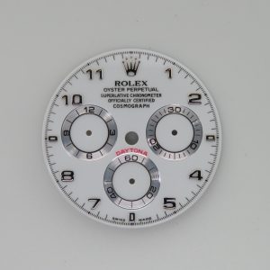 For sale is an OEM Rolex Daytona White Arabic Numeral dial. This dial was previously mounted on a Rolex Daytona 116519 and is in excellent condition. It is compatible with both the 116519 and 116509 models.