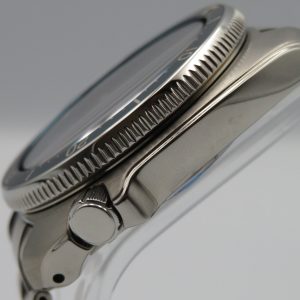 Condition: Pre-owned with light surface scratches and scuffs throughout. The bezel shows a noticeable scratch at the “30” index. The watch is fully functional and keeping accurate time. It has been professionally inspected and tested by us, and includes a 1-year warranty.