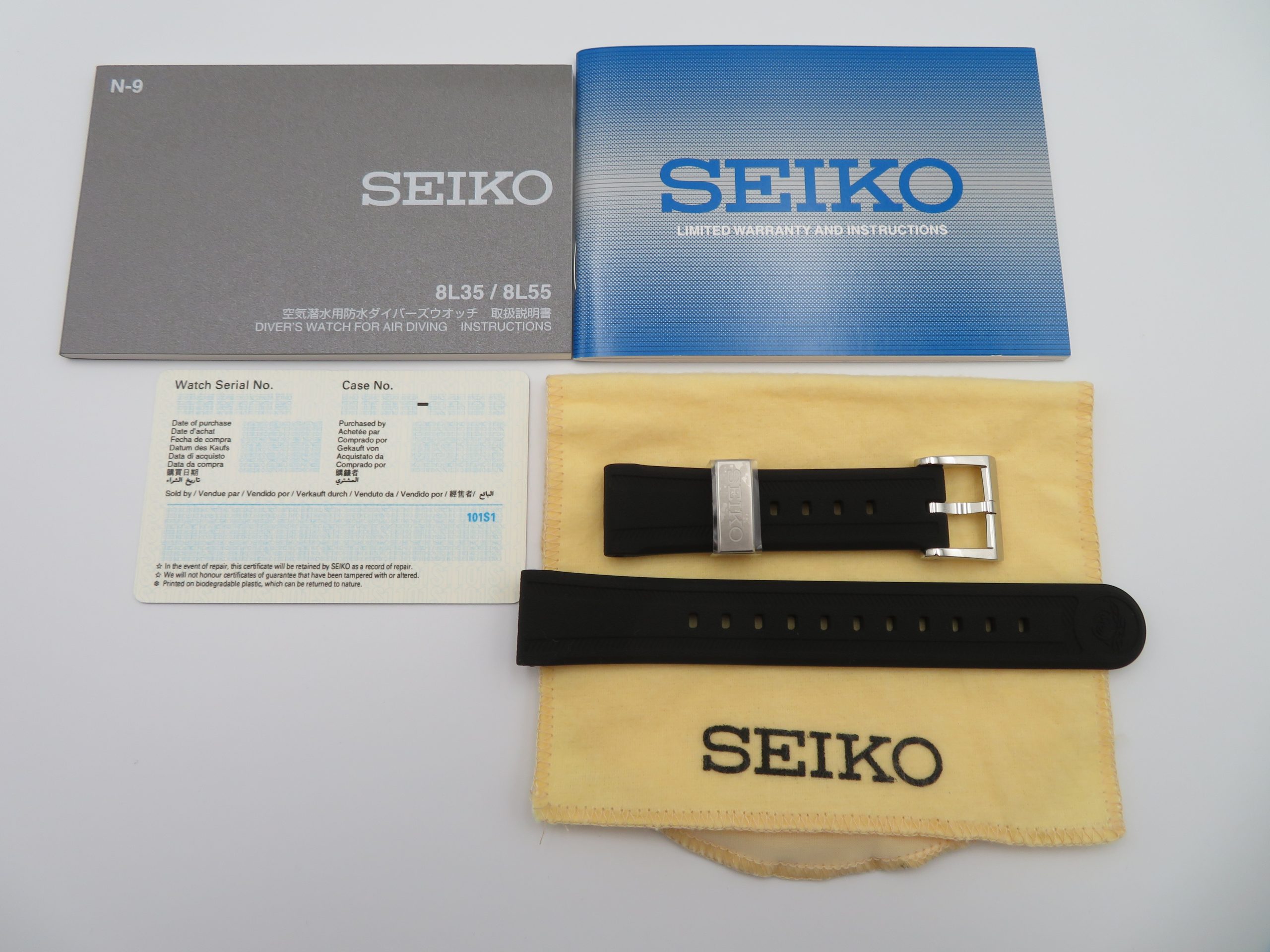 Features include: Caliber 8L35 automatic movement with 26 jewels and a 50-hour power reserve. Screw-down crown, screw-back case, 200m water resistance, luminous indexes and hands, rotating bezel, and sapphire crystal.