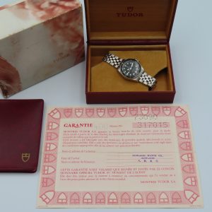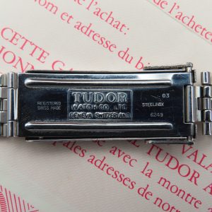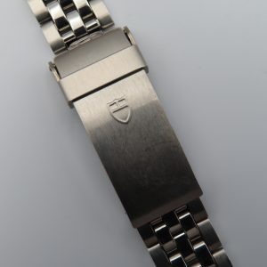 Features: Stainless steel case, Tudor bracelet stamped “6249 03” on the clasp and “599” on the end links, acrylic crystal, screw-down crown, screw-back case, and ETA Cal. 2671 automatic movement with 25 jewels.